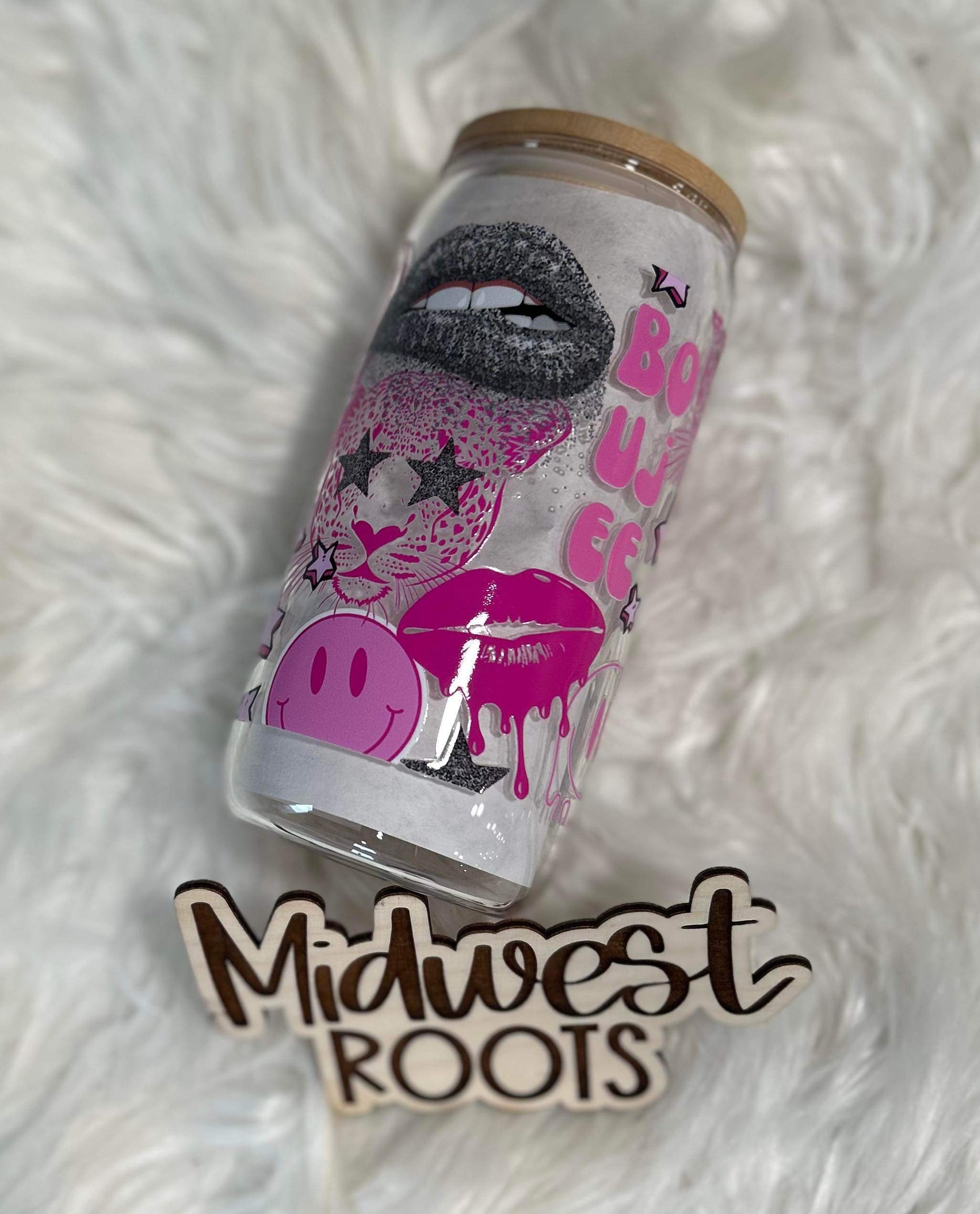 Pink Boujee 16oz Glass Can with Bamboo Lid