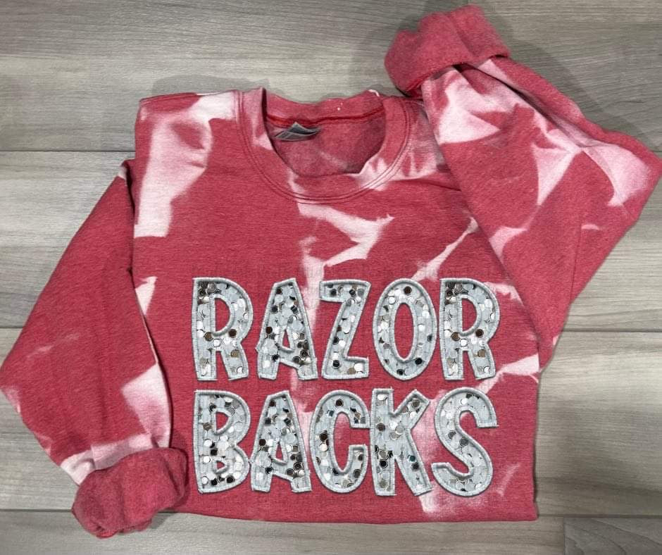 Razorbacks Faux Sequins Red Bleached Sweatshirt