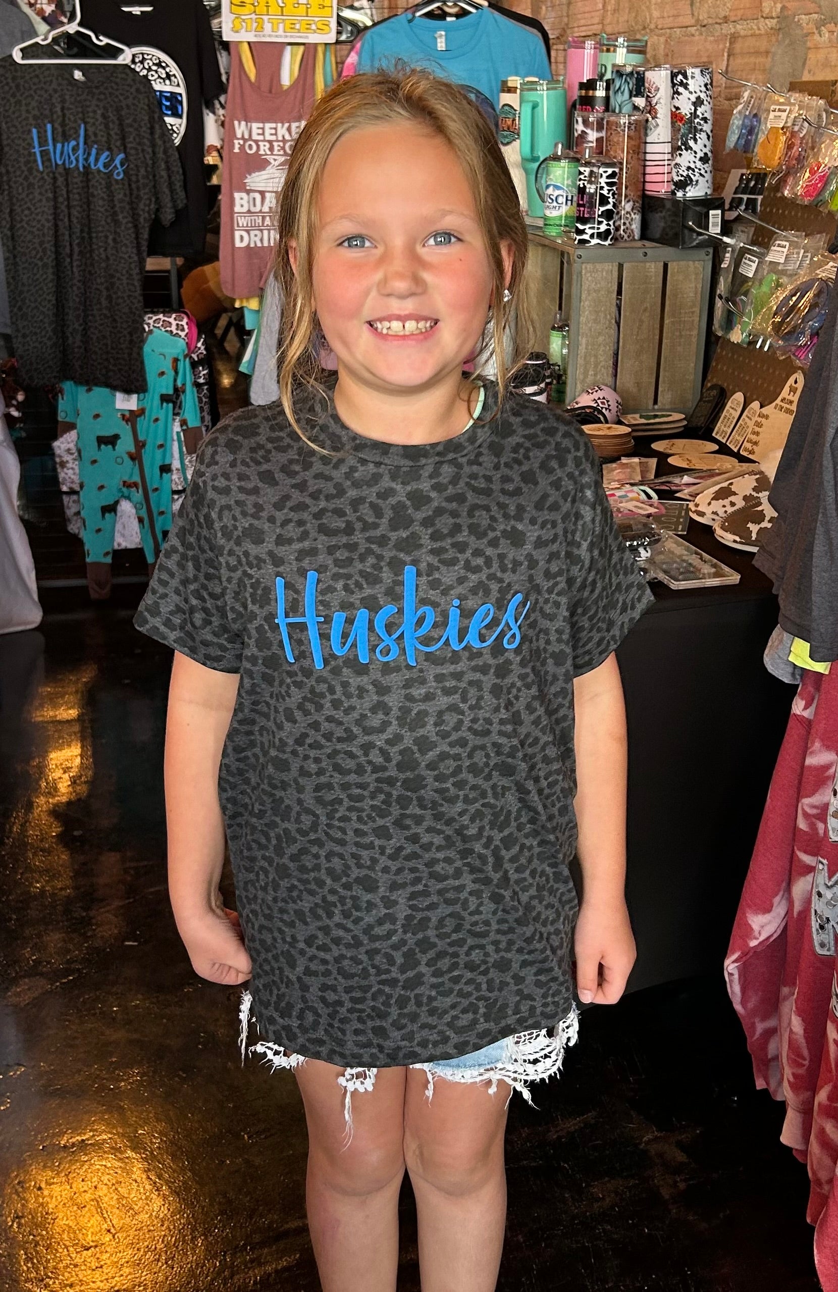 RTS Kids Huskies Puff print Cheetah Print Top