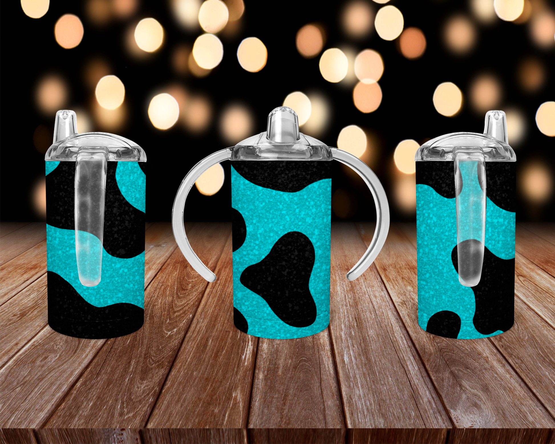 Teal Cow Print Kids Sippy Cup or Water Bottle